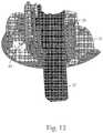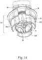 FIG. 13 shows a partial view (including upper and lower elements of base assembly and sub-elements of the base assembly) of the apparatus, in a closed position, shown inFIG. 10;