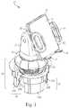 FIG. 14 shows a partial, upwards perspective view (including knob, threaded barrel, upper and lower elements of base assembly, sub-elements of base assembly and locking element) of the apparatus, in an open position, shown inFIG. 1;