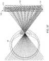 FIG. 8Q illustrates a version wherein many reflectors (298) of a stack (286) form a relatively continuous curved reflection surface in the aggregate or discrete flat facets that are oriented to align with an overall curve. The curve could a parabolic or elliptical curve and is shown cutting across a plurality of waveguides (288,290,292,294,296) to minimize any crosstalk issues, although it also could be utilized with a monolithic waveguide configuration.