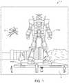 DETAILED DESCRIPTIONFIG. 1 depicts an augmented reality scene (4) according to one embodiment wherein a user of an AR technology sees a real-world park-like setting (6) featuring people, trees, buildings in the background, and a concrete platform (1120). In addition to these items, the user of the AR technology also perceives that he “sees” a robot statue (1110) standing upon the real-world platform (1120), and a cartoon-like avatar character (2) flying by which seems to be a personification of a bumble bee, even though these elements (2,1110) do not exist in the real world.