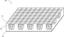 FIG. 11C illustrates adiffractive structure1100 positioned above the electromagnetic system of subsets ofresonator elements1100 connected to thecommon capacitive elements1120, as described in conjunction withFIG. 11A. Thediffractive structure100 may have a volumetric distribution of dielectric constants specifically selected to modify the arbitrary beamforms generated by sweeping a physical stimulus value into a sequence of beamforms conforming to a target sequence of beamforms (e.g., a raster scan of a three-dimensional space or other pattern of beamforms).