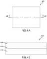 As described above, thesplice member400 may be secured to a section of thestock material unit300a.FIGS. 4A-4B illustrate thesplice member400 according to an embodiment.FIG. 4A is a top view of thesplice member400, andFIG. 4B is a cross-sectional view of thesplice member400, at the cross-section line indicated inFIG. 4A. In the illustrated embodiment, as described above, thesplice member400 includes thebase410,adhesive layer420 on thebase410, andremovable cover430 that may cover theadhesive layer420 and may be removed therefrom (e.g., without materially affecting the adhesive properties of the adhesive layer420). For example, theremovable cover430 may include a siliconized coating.