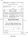 FIGS. 21A-21C include outward views of a displayed user interface, including some aspects related to conflicts in the scheduling of an appointment according to an example embodiment;