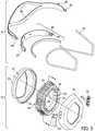 FIG. 3 is an exploded view of therespirator mask10, including both themask portion12 and theheadgear14. Themask portion12 has three major parts: aninner seal22, afilter cartridge16, and thebezel18. All threeparts16,18,22 have a generally hexagonal-annular shape that leaves their centers open. Theinner seal22 would typically be made of a soft, resilient elastomer, such as a silicone, a thermoplastic urethane, or another type of thermoplastic elastomer. The rearward side of theinner seal22 has alip24 that makes a seal around the face; the forward side of theinner seal22 hasgroove structure26 that accepts thefilter cartridge16.