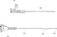 13B is a photograph of embodiments of the optical hypotube3002 side by side with an embodiment of an outertubular body3006, similar to the outer tubular bodies depicted previously inFIGS. 3A-6C. Here, thebend3004 is fairly gradual, biasing thetip3006 against the sharpened distal end of the outertubular body3008.FIG. 13C further depicts embodiments of the optical hypotube3002 and the outertubular body3008, however, here theneedle hub assembly3012 and the electro-optical assembly3010, similar to the embodiments described above in relation toFIGS. 1-7.