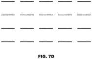 In an aspect, the more than onelaser beams108 from the fractionatedoptical system104 may not overlap at a location in the living organism with the first pain receptors. The more than onelaser beams108 may spatially overlap at thecirculatory vessel118. The spatial configuration of thelaser beams108 may include gaps between theindividual laser beams108 on theskin116 of the living organism. The gaps may be about 5 μm to about 200 μm. As illustrated inFIGS. 7A-7D and 8A-8H, the spatial configuration of thelaser beams108 may be one-dimensional (FIGS. 7A and 7B) or two-dimensional (FIGS. 7C and 7D). The fractionatedoptical system104 may include an optical component for controlling the shape and number of laser beams. The optical component may be selected from a non-transparent mask, a beam splitter, an optical fiber array, a lens array, a microlens array, a mirror array, a diffraction element, a diffuser, a pinhole, and combinations thereof. The shape of thelaser beams108 may be selected from circular, linear, strip, elliptical, square, and combinations thereof. For example,FIG. 7A andFIG. 7C illustrate circular beam dimensions andFIG. 7B andFIG. 7D illustrate linear beam dimensions. The laser system, optical system, and the acoustic systems may independently be non-scanning or scanning. The fractionatedoptical system104 may be configured to scan the more than onelaser beams108 across thecirculatory vessel118. Eachfocused ultrasound transducer126 may have an acoustic focal volume that does not overlap or partially overlap to cover the whole blood vessel cross-section (FIG. 5). The fractionatedacoustic system106 may be configured to scan the acoustic focal volumes across the circulatory vessel. Thefocused ultrasound transducers126 may be focused spherical ultrasound transducers in one aspect. Multiple beams are used in laser materials processing, optical communications, optical image processing, microelectronics, and laser treatment. However, the described multi-beam schematics have been never used in PAFC, which brings new unpredictable effects. To use multiple beams with PAFC, there is a need to increase the laser energy in deep tissue without damaging the surface layers. On the contrary, in known laser treatment with multiple beams the main goal is to damage the surface layer, which is not appropriate for safe laser diagnostics in medical fields.