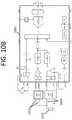 FIGS. 11A-11B show example block diagrams depicting the circuitry for sensing and measuring the cardiovascular time-varying IPG raw signals and steps to obtain a filtered IPG waveform, consistent with various aspects of the present disclosure. The example block diagrams shown inFIGS. 11A-11B are separated into a leg impedance sub-circuit1100 and afoot impedance sub-circuit1105.