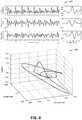 FIG. 4 shows a graph illustrating a longitudinal cardiac physiological signal, a lateral cardiac physiological signal, and a dorsoventral cardiac physiological signal, and another graph illustrating a three-dimensional cardiac physiological parameter, consistent with various aspects of the present disclosure;