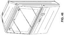 FIG. 51 is a right side elevation view of the example core shown inFIG. 49, andFIG. 52 is a rotated version ofFIG. 51. The left side view may be substantially the mirror of the right side view. Thus, on the sides, right-left alignment guides (e.g., facilitating the left-to-right alignment in the shell) may be provided, as may be top and bottom “keyhole” locks. A slide support member may be provided on each side so that corresponding features on the shell engage with them and help receive the core into the shell. An area where the core may rest on a cross-beam or structural member of the core also is identified.