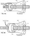 FIGS. 22A and 22B are block diagrams illustrating example, non-limiting embodiments of a waveguide device for launching hybrid waves in accordance with various aspects described herein.