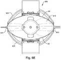 FIG. 6E is a top schematic view illustrating a path of mitral valve leaflets around a coaption element of a mitral valve repair device;