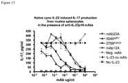 FIG. 15 shows that the IL-23p19 antibodies 5040Q/EVand 3759EQ/QSof the invention inhibit native cynomologous monkey IL-23 mediated IL-17 production.