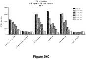 FIG. 18 shows the results of an evaluation of the ability of DART D, TRIDENT A, CTLA-4mAb 3 G1AA, PD-1mAb 6 G4P and the combinations of CTLA-4mAb 3 G1AA/PD-1mAb 6 G4P (Ab Combo 1) to enhance the response of a Mixed Lymphocyte Reaction. Monocyte-derived dendritic cells were generated by treating CD14+ monocytes with GM-C SF (provided atday 1 of the incubation period) and IL-4 (provided atday 7 of the incubation period). Atday 8 of the incubation period, a MLR was set up by incubating the CD4+ T cells with the monocyte-derived dendritic cells (provided atday 8 of the incubation period) and the anti-CTLA-4 and anti-PD-1 binding molecules (provided atday 8 of the incubation period). The release of IFN-γ is plotted inFIG. 18. Both the bispecific DART D and TRIDENT A molecules were found to enhance the MLR response to the same extent or slightly better than the combination of individual parental antibodies. The presented data comprises seven series (each relating to a different binding molecule: hIgG4 control; PD-1mAb 6 G4P; CTLA-4mAb 3 G1AA; a combination of CTLA-4mAb 3 G1AA/PD-1mAb 6 G4P (Ab Combo 1); DART D; TRIDENT A; and an hIgG1 control, respectively from left to right); each series is composed of six columns (each relating to a different concentration of the provided molecule: 0.016, 0.08, 0.4, 2, 10 or 50 nM, respectively from left to right).