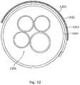 FIG. 12 schematically illustrates, in cross section, another preferred embodiment of aprotective cover1201 as comprises the three respective layers depicted inFIG. 10 of1002,1003 and1004 and which is shown as substantially permanently fixed to aconduit assembly1202 located within. Notably this embodiment does not comprise any integral hanging means or secondary fixing securement arrangement of the type depicted earlier as straps such asstrap216. However it is to be understood by those skilled in the art that a cover comprising the stated sequence of layers of any ofFIGS. 10 to 12 may comprise either or both of a hanging means and a secondary fixing securement arrangement.