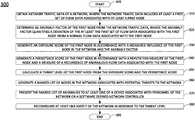 Atstep310, the processing system obtains network traffic data of a network, where the network traffic data includes at least a first set of flow data associated with at least a first node of the network. In one example, the network traffic data includes measured properties and characteristic properties of a plurality of flows as described above. For instance, the characteristic properties may include at least one of: a source IP address, a destination IP address, a source port, a destination port, a protocol type, and so forth. On the other hand, the measured properties include at least one of: a packet size, a number of packets, a number of bytes, a duration of a connection, and so forth.