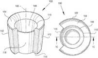 Thebody102 defines abrim104 that illustratively includes a curved shape (seeFIG. 1C). In other embodiments, thebrim104 may have a planar shape or a non-curved shape. Illustratively, thebrim104 has an angular width about alongitudinal axis106 of thedevice100 of substantially 270 degrees (that is, 270 degrees within ±5 degrees). In other embodiments, the brim may have other angular widths about thelongitudinal axis106.