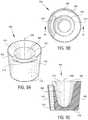 Opposite thelower portion1804, theouter portion1806 of thebody1802 couples to the firstinner portion1808 of thebody1802. In some embodiments, the firstinner portion1808, which is shown individually inFIG. 18I, is axisymmetric about thelongitudinal axis1814, with the exception of possible coupling elements as described below. Illustratively, the firstinner portion1808 of thebody1802 generally includes a shape that is similar to a funnel. That is, the firstinner portion1808 illustratively includes a relativelysmall inlet1838 that is disposed below a relativelylarge outlet1840. Proximate theoutlet1840, the firstinner portion1808 may include one or more coupling elements for detachably securing the firstinner portion1808 to theupper portion1812 of thebody1802. Illustratively, the coupling elements are fourrecesses1842 that are spaced substantially 90 degrees (that is, 90 degrees within ±5 degrees) apart from each other. Below theoutlet1840, the firstinner portion1808 includes acurved wall1844 that tapers inwardly proceeding towards theinlet1838. Opposite theoutlet1840, thecurved wall1844 couples to theinlet1838. Theinlet1838 press fittingly and detachably receives the secondinner portion1810, as described in further detail below. In other embodiments, thewall1844 is alternatively angled, while maintaining the same overall configuration.