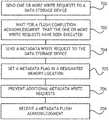 Referring toFIG. 1, a computer in a RDMA data storage system according to an embodiment of the present invention includes aprocessor100 connected to amemory102 and adata storage device104. Theprocessor100 may execute program instructions to perform embodiments of the present invention. Program instructions should be understood to encompass software, firmware or any equivalent of software or firmware. Theprocessor100 may receive one or more data write requests in parallel through a plurality data pathways. The one or more data write requests may be maintained in a queue. The one or more data write requests may be written to thememory102 where thememory102 is configured as a cache. Theprocessor100 may flush data written to thememory102 to adata storage device104. When data has been flushed to thedata storage device104, theprocessor100 may send one or more acknowledgements indicating that the data write requests have been flushed to thedata storage device104. Theprocessor100 may then wait for a metadata write request related to the data write requests. The processor may poll a specific memory address for a metadata write flag indicating that a write request is a metadata write request. Theprocessor100 may then execute the metadata write request.