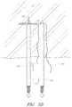 InFIG. 22A, a design of a two-shaft embodiment of a suture passer system, that has been used, e.g., for meniscal repair, is shown. In general, conventional two-shafted suture passer systems comprise a needle shaft and a capture shaft. A distal tip of the capture shaft penetrates further into tissues than a distal tip of the needle shaft. The difference in depth between the distal tip of the needle shaft to the distal tip of the capture shaft is defined as distance (C). When a needle is deployed from the needle shaft, the needle crosses an intended bite at an acute angle, defined as angle θ. This relatively small angle θ results in the capture shaft penetrating further into tissues than the needle shaft. Moreover, the suture passer system defines a proximal point (A) of the suture, where the suture needle emerges from the shaft, and also a depth of penetration into the tissue (B). The distance between the proximal point (A) of the suture and the depth of penetration (B) is defined as a distance (D). The small angle θ also results in a large distance (D).