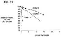 FIGS. 13 through 16 show the improved temperature and humidity stability of the materials of Examples 5 and 6 when compared to unmodified nylon copolymer solvent soluble polyamide.