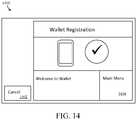 FIG. 14 is yet another interface that may be presented on a display of the registration terminal ofFIG. 1 to confirm that a user is registered for a mobile wallet account, according to an example embodiment.
