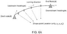 Each of the map-matched links may be associated with a LINK_ID, a link start location, a link end location, a link upstream heading, a link downstream heading, a link shape location, and a link length as exemplarily illustrated inFIGS. 6A-6B. A link start location refers to co-ordinates of position of a start node of a map-matched link. Similarly, a link end location refers to co-ordinates of position of an end node of a map-matched link. A link upstream heading refers to a heading of a link start location measured as a heading of a vector formed by the link start location and a shape location nearest to the link start location. A link downstream heading refers to a heading of a link end location measured as a heading of a vector formed by the link end location and a shape location nearest to the link end location. A link shape location refers to a set of shape locations of the map-matched links excluding the link start location and the link end location. A link length refers to a total length of a map-matched link.