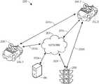 To provide additional examples, mobile computing devices204.1 and204.2 may be configured to communicate with one another viaradio links203band203cby each communicating withnetwork201 utilizing a cellular communication protocol. As an additional example, mobile computing devices204.1 and/or204.2 may be configured to communicate with external computing device206 viaradio links203b,203c, and/or203e. Still further, one or more of mobile computing devices204.1 and/or204.2 may also be configured to communicate with one or moresmart infrastructure components208 directly (e.g., viaradio link203d) and/or indirectly (e.g., viaradio links203cand203fvia network201) using any suitable communication protocols.