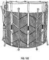 FIG. 191 shows an exemplary embodiment of a heart valve assembly connected to an exemplary embodiment of a delivery system and forcibly expanded. Here, the shape of the graft material is shown as corresponding to the shape of the upstream arms as in a saw tooth pattern.