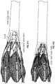In this exemplary embodiment, the delivery system is longer than described above at least by the distance between the two stent lattices. Further, one of the stent lattices is loaded into the delivery sheath at an intermediate point and the delivery sheath is extended over the graft material substantially without corrugation or crumpling thereof until it reaches the upstream stent lattice. Loading of the upstream stent lattice occurs similarly as described herein and the nose cone is docked at the distal end adjacent the upstream stent lattice. As the stent lattices (and graft) for this procedure are much smaller in diameter than the stent lattices described for the aorta or heart, each stent lattice does not need as many expansion devices (e.g., the jack assemblies). In particular, 1, 2, or 3 of the jack assemblies are only needed for stent lattices of 8 to 10 mm in installed diameter. Therefore, the actual number of lumens and drive wires needed for such a small stent graft may be less than the ones illustrated herein, allowing for the multilumen and delivery sheath to be made much smaller in diameter for this procedure. Accordingly, all of the control features will be similar as described herein but reduced in number with half of the control wires extending to an intermediate point within the loaded delivery sheath to the downstream stent lattice and the other half of the control wires extending to the distal end of the delivery sheath to the upstream stent lattice in a similar manner as illustrated inFIG. 169.