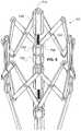 FIG. 20 is a fragmentary, perspective view of the stent deployment system ofFIG. 18 with a diagrammatic illustration of paths of travel of strut crossing points as the stent is moved between its expanded and contracted states;