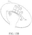 FIGS. 13A and 13B are drawings of two alternative implementations of the electrode pad assembly in which a handle is provided for the rescuer.