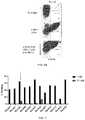 FIG. 16 are exemplary histograms to illustrate that ABX0030 stains human CD3+ cells and not CD3neg cells. PBMCs stained with GAH-APC conjugate and anti-CD3 (clone SK7) (bottom left histogram). PBMCs stained with anti-CD4 and GAH-APC conjugate (upper left histogram). CD3+ cell staining with ABX0030+GAH-APC conjugate (no SK7 Ab) (upper right histogram). Double staining with anti-CD-4-PE and ABX0030+GAH-APC conjugate (upper right histogram). Notice in this panel the two populations of CD3+ cells representing CD4+ and CD8+ T-cells. Doubling staining of CD3+ cells using ABX0030 and clone SK7-PE (bottom right histogram).