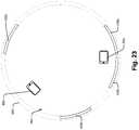 FIG. 23 is a schematic illustrating two interface devices within a circular conference space including content fields about the circular space walls;