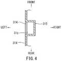 As shown inFIGS. 3 and 5, in a manner similar to the right-sidevertical wall321. a left-sidevertical wall325 is provided on a lower left side of thelower housing32. The left-sidevertical wall325 is formed so as to have a U shape rotated by 90 degrees counterclockwise as shown in the plan view ofFIG. 5, and is formed to surround a region exposed to water (refer to the two-dot chain line shown at the left end part ofFIG. 5), which may enter theupper housing31 from theexhaust hole31pand ma drop down the ceiling-sidevertical wall315. The left-sidevertical wall325 surrounds said region from the frontward, the rearward and the rightward directions. The left-sidevertical wall325 is provided on thebottom plate323 of thelower housing32 and the left edges of the left-sidevertical wall325 are joined to the inner wall surface of the outer circumferentialvertical wall324 that constitutes thelower housing32. Furthermore, adrain hole323his formed on thebottom plate323 at the center of a region surrounded by the outer circumferentialvertical wall324 and the left-sidevertical wall325 as shown inFIGS. 3 and 5.