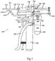 Still referring toFIG. 3, themain housing302 is affixed to the handle/air pump304. The top of themain housing302 is affixed to the syringe barrels314, either permanently or releasably. Thetrigger312 is affixed to, and constrained so that at least a part of the trigger moves axially within, themain housing302. The handle/air pump304 contains the air pump (not shown). Theoutlet308 of the handle/air pump304 is connected to theair inlet301 of thepressure reservoir340. Theair outlet303 of thepressure reservoir340 is connected to theair inlet305 of themain housing302. Thepressure reservoir340 may be affixed to themain housing302 or to the handle/air pump304. Theaerosol pressure regulator322 and the pneumaticcylinder pressure regulator306 are housed within themain housing302 and communicate with theair inlet305 of themain housing302. Any suitable linkage arrangement connects thepump lever324 with an air pump mechanism (not shown) housed within the handle/air pump304. Thepump lever324 is pivotably affixed to either themain housing302 or the handle/air pump304. Thereturn spring338 is affixed between the handle/air pump304 and thepump lever324.