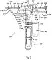 One or more syringe barrels214 are releasably or permanently attached to themain housing202 and are in fluid communication with anaerosol mixing head216. Asyringe manifold230 having anoutlet231, similar to the manifold130 (FIG. 1) connected the syringe barrels and theaerosol mixing head216.