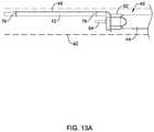 FIG. 13A illustrates a side view of another example implant delivery device with the sheath in cross-section;
