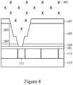 FIG. 3 illustrates a removal of thefirst photoresist122 and thefirst hardmask109. In an embodiment, thefirst photoresist122 may be removed using, e.g., a plasma ashing process, whereby the temperature of the photoresist may be increased until thefirst photoresist122 experiences a thermal decomposition and may be removed which may be followed by an etching process to remove any additional layers of the first photoresist122 (e.g., a bottom anti-reflective coating (BARC) layer or an intermediate mask layer). However, any other suitable process, such as a wet strip, may be utilized.