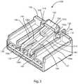 FIG. 3 is a third perspective view of the female housing shown inFIG. 1.FIG. 3 illustrates at least a front126 of thefemale housing100, at least oneterminal aperture130 on thefront126 of thefemale housing100, and anaperture134 formed on thefront126 of thefemale housing100 such that theaperture134 is for receiving an optional connector position assurance (CPA) unit.