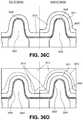 FIG. 34B illustrates cross-sectional views of a triplet of NMOS devices having a differentiated voltage threshold based on differentiated gate electrode structure and on modulated doping, and a triplet of PMOS devices having a differentiated voltage threshold based on differentiated gate electrode structure and on modulated doping, in accordance with another embodiment of the present disclosure.