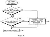 Referring toFIG. 9, another embodiment of logic associated with a guest request to purge is described. Initially, a guest executing on a hardware thread of a physical core issues an invalidation or purge request (e.g., an IPTE instruction),STEP900. A determination is made as to whether the request is a local request (e.g., islocal clearing control460 set to one),INQUIRY902. If the request is not a local request, then relevant entries (or all guest entries if the purge request is a full purge request) on all hardware threads in the configuration (i.e., all hardware threads of all cores of the configuration) are purged,STEP904, and execution continues,STEP916. However, if the request is a local request, then a further determination is made as to whether a complete purge of other thread(s) within the set of threads has already been done (e.g., a Purge_Done indicator stored in, e.g., memory is checked),INQUIRY906. If a complete purge has been done previously, then relevant entries (or all for a full purge request) in the TLB on the hardware thread initiating the purge are purged,STEP908, and execution continues,STEP916. Otherwise, if a complete purge has not been done, then relevant entries (or all for a full purge request) in the TLBs on all threads of the set of threads are purged,STEP910.