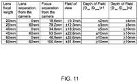 FIG. 11 shows a table illustrating the corresponding fields of view about the optical axis for the corners of the two configurations ofFIGS. 9 and 10 in accordance with an embodiment of the present disclosure;