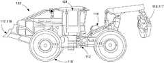 FIG. 1 is a side view of anexemplary work machine102, in the form of a skidder. It is noted that while present examples are described in the context of a skidder in a forestry application/jobsite, the present systems, components and methods can be utilized in other types of work machines and applications. The term “work machine” or “vehicle” may also interchangeably be used.