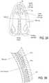 FIG. 36 depicts a cross-section of a nose in the area of the nasal valve, andFIG. 37 is a diagram illustrating a nasal valve area in cross-section. These cross-sectional illustrations show that the nasal valve is bordered by the caudal end of the upper lateral cartilages (ULC)940 and theseptum941. The angle formed between theULC940 and theseptum941 may be referred to as the nasal valve angle. Treatment may be performed on a number of surfaces within the nasal valve, including a firstlateral surface942, a secondlateral surface943, theapex944 of the nasal valve angle, or combinations thereof. As shown inFIG. 36, the surfaces within the nasal valve may be shaped in a non-uniform manner that may pose challenges when a uniform treatment across the surfaces is desired. Adjustable treatment surface features, such as those described above, may help facilitate treatment in these anatomical areas.FIGS. 38A and 38B are frontal/partial see-through and sagittal cross-sectional views, respectively, of a human head, illustrating the upper airway. These figures illustrate the superior turbinate, the middle turbinate, and the inferior turbinate. The turbinates may vary in size and position. The inferior turbinate is often the largest turbinate, and it may extend horizontally along the lateral wall of the nasal cavity. The medial surface of the inferior turbinate may be convex, and the lateral surface may be concave. The middle turbinate may be smaller than the inferior turbinate, and may project downwards over the opening of the maxillary and anterior and middle ethmoid sinuses. The superior turbinate may be a smaller structure connected to the middle turbinate by nerve-endings. Treatment of the turbinates may require a device capable of adjustable treatment surface areas in order to treat the different shapes and sizes of different parts of the turbinates.
