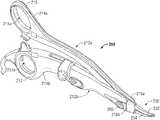 Non-electricallyconductive member419 may be formed of any suitable electrically insulative material, e.g., non-electrically conductive composite materials, with desired material characteristics. In some embodiments, non-electricallyconductive member419 is formed of non-electrically conductive ceramic, and may provide enhanced thermal resistance, strength, and/or rigidity of thejaw assembly410. In alternative embodiments not shown, non-electricallyconductive member419 may be formed of a combination of electrically-conductive materials, partially electrically-conductive materials, and/or non-electrically conductive materials. Non-electricallyconductive member419 may be formed as a multi-layer configuration of materials. Non-electricallyconductive member419 may be formed by any suitable process, e.g., injection molding, ceramic injection molding (CIM), or compression molding.