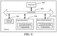 FIG. 9 is a schematic structural diagram of another blockchain-based event processing device according to some embodiments. Referring toFIG. 9, on a hardware level, the device includes aprocessor902, aninternal bus904, anetwork interface906, aninternal memory908, and anon-volatile memory910, and may further include other hardware for services. Theprocessor902 reads corresponding computer programs from thenon-volatile memory910 into theinternal memory908 and then executes the computer programs, to form an event processing apparatus based on a blockchain on a logic level. In some embodiments, in addition to the software implementation, one or more embodiments of the specification do not exclude other implementations, such as a logic device or a combination of software and hardware. In other words, entities executing the processes are not limited to the logic units but may be hardware or logic devices.