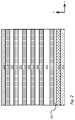 FIGS. 8A and 8B illustrate a stage in the process flow after forming a conductive material in the horizontal openings via the slits to form a stack of conductive strips.