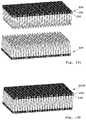 FIG. 62 shows a top perspective view of an assembly comprising multiple pipette tip retention sheet elements, where each sheet element is adjacent to another sheet element on the short side of the element. The assembly shown inFIG. 62 is in a flat orientation.FIG. 63 shows a top perspective view of a variant of the assembly shown inFIG. 62 that comprises an array of pipette tips in each sheet disposed within holes of the sheet.FIG. 64 shows a side view of the assembly shown inFIG. 62 in a coiled orientation, andFIG. 65 shows a top perspective view of the assembly shown inFIG. 64.FIG. 66 shows a side view of the assembly shown inFIG. 63 in a coiled orientation, andFIG. 67 shows a top perspective view of the assembly shown inFIG. 66.