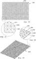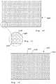 FIG. 7 shows a top perspective view of an embodiment of a static-defeating apparatus, also referred to herein as a pipette tip retention sheet, andFIG. 8 shows an enlarged view of a portion of the sheet shown inFIG. 7.FIG. 9 shows a bottom perspective view of the pipette tip retention sheet embodiment shown inFIG. 7.FIG. 10 shows a top view of the pipette tip retention sheet embodiment shown inFIG. 7, andFIG. 11 shows an enlarged view of a portion of the sheet shown inFIG. 10.FIG. 12 shows a bottom view of a the sheet shown inFIG. 7.FIG. 13 andFIG. 15 show a short side view and a long side view, respectively, of the sheet shown inFIG. 7, andFIG. 14 shows an enlarged view of a portion of the sheet shown inFIG. 13.