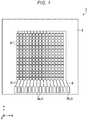 On the +Y side from theexternal terminals3, a plurality ofultrasonic elements4 arrayed in the form of a matrix is arranged on thesubstrate2. The numbers of rows and columns of theultrasonic elements4 are not particularly limited. When theultrasonic device1 is used as a sensor, the number of rows may be 10 to 100 and the number of columns may be 10 to 100. This provides an ultrasonic wave with an intensity that can be detected with high sensitivity. In this embodiment, to facilitate understanding, it is assumed, for example, that theultrasonic elements4 are arranged in 15 rows by 15 columns.